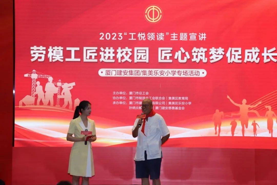9月8日下午,2023“工悅領讀”主題宣講廈門建安集團和集美區(qū)樂安小學專場活動走進嘉庚故里。本次活動由廈門市總工會主辦,廈門市制造業(yè)工會聯(lián)合會、集美區(qū)教育局協(xié)辦,廈門市建安集團有限公司、集美區(qū)樂安小學、孫炳炎教育基金管理小組、廈門建安慈善基金會共同承辦。
