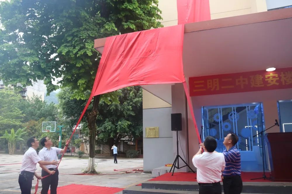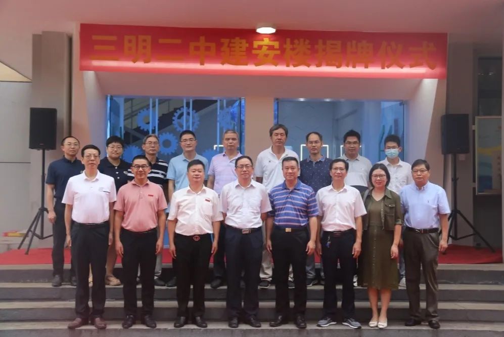 2022年 9月1日上午,三明市第二中學建安樓揭牌儀式隆重舉行。三明市委教育工委書記、市教育局黨組書記劉若嘉,市政協(xié)教科衛(wèi)體委員會主任于修芹,市教育局黨組成員、校黨總支書記、校長伊永河,副校長陳少清、謝華文、吳文勝、羅世余、劉新明,校黨總支副書記、工會主席李似麒,廈門建安集團董事長孫碧慶,工會主席、副總經(jīng)理曾怡航等出席活動。